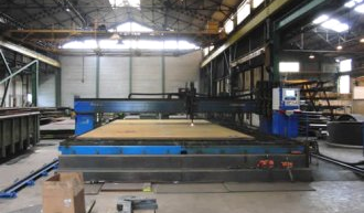 Notre table d’oxycoupage, munie de 6 chalumeaux de coupe et d’une tête de marquage plasma, nous permet des découpes dans des tôles d’acier d’épaisseur jusqu’à 200 mm d’épaisseur. Ses dimensions permettent de travailler des tôles en acier carbone de tous formats, y compris des tôles de très grande largeur jusqu’à 5000mm.