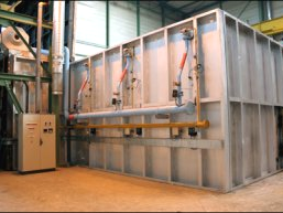 Les pièces sont portées à une température voisine de 600°C selon une loi de progression établie. La température de la pièce, ainsi que les écarts entre les différents points, sont contrôlés par des sondes reliées à un automate commandant les différents brûleurs. L’évolution du processus fait l’objet d’un enregistrement tout au long du cycle. Le four permet de traiter des pièces allant jusqu’à 20 mètre de long, 8,5m de diamètre et d’une masse indivisible de 140 tonnes.